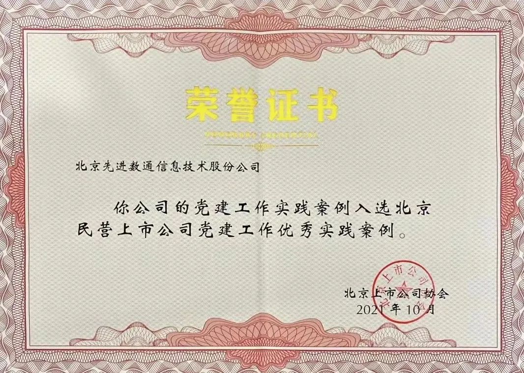 近期,北京上市公司协会授予北京太阳成集团tyc234cc信息技术股份公司荣誉证书,太阳成集团tyc234cc党建工作实践入选北京民营上市公司党建工作优秀实践案例,相关党建活动已收录在《北京民营上市公司党建工作优秀实践案例汇编》。