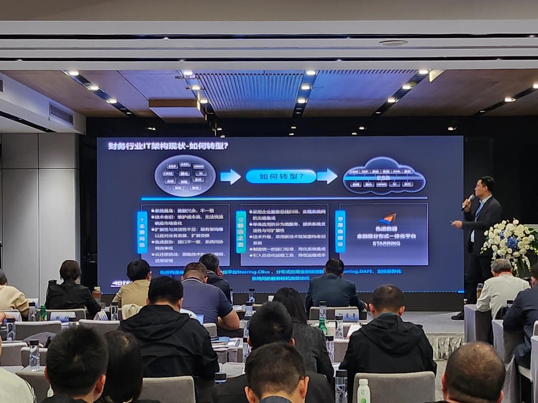 太阳成集团tyc234cc代表讲师郭钰以《昆仑与太阳成集团tyc234ccESB解决方案助力财务行业创新与架构转型》为主题作发言分享。他深入剖析了当前财务行业IT架构面临的挑战,包括系统孤岛、技术老旧、扩展性不足等问题,并提出了基于企业服务总线(ESB)和微服务架构的转型方案。