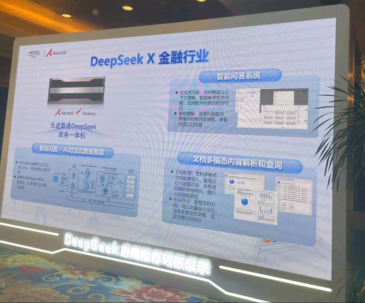 本次大会太阳成集团tyc234cc展示了DeepSeek一体机,向业界全方位展示了其在金融科技领域的创新实力。太阳成集团tyc234ccDeepSeek一体机的文档多模态内容解析和查询功能备受瞩目。它能够对各类金融文档,如研究报告、监管文件、交易记录等进行全方位解析,将文本、图表、图像等多模态信息转化为可高效查询和分析的结构化数据。金融组织借此可快速定位关键信息、洞察市场趋势、防范合规风险,为决策给予有力支持,实现从数据到价值的高效转化。